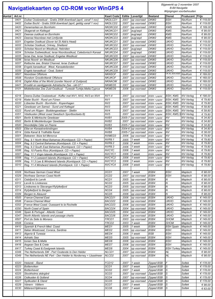 Nederlandse binnen- en buitenwateren en de meeste buitenlandse kaarten zijn op
