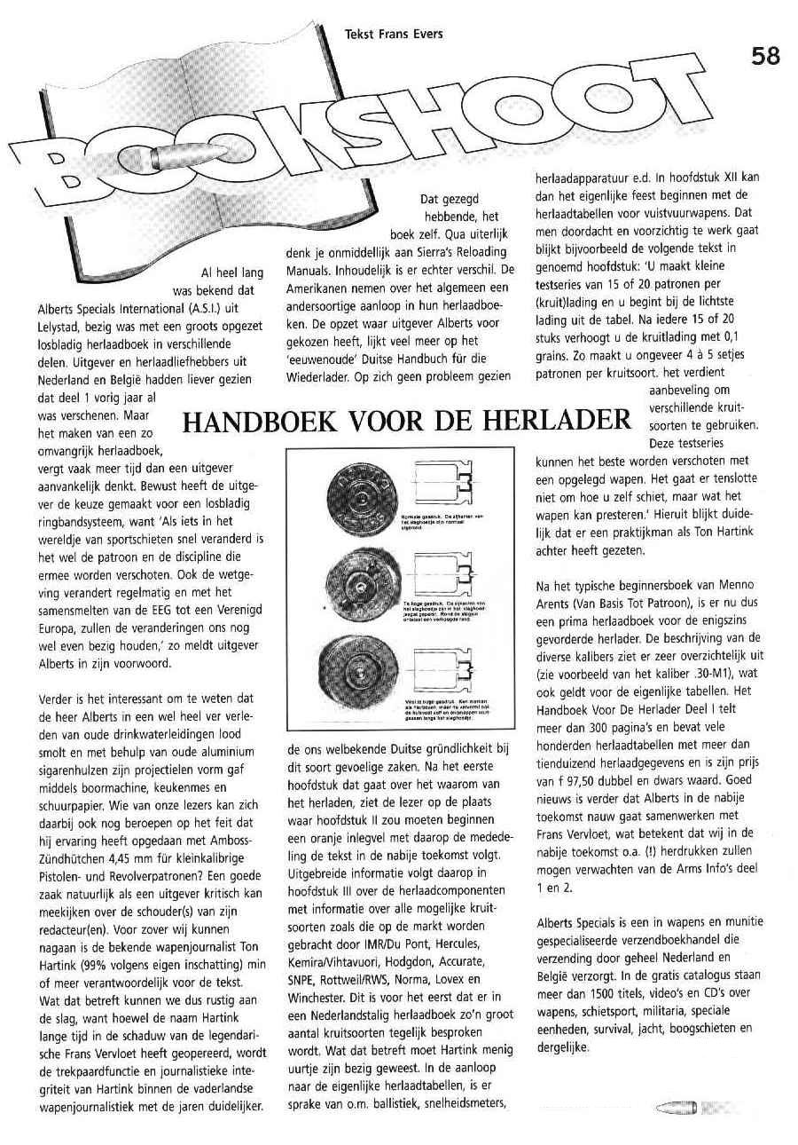 Een 2-tal pagina's uit het Handboek voor de Herlader: Een recentie uit het wapenblad "SHOOT" over het HANDBOEK VOOR DE HERLADER Deel I
